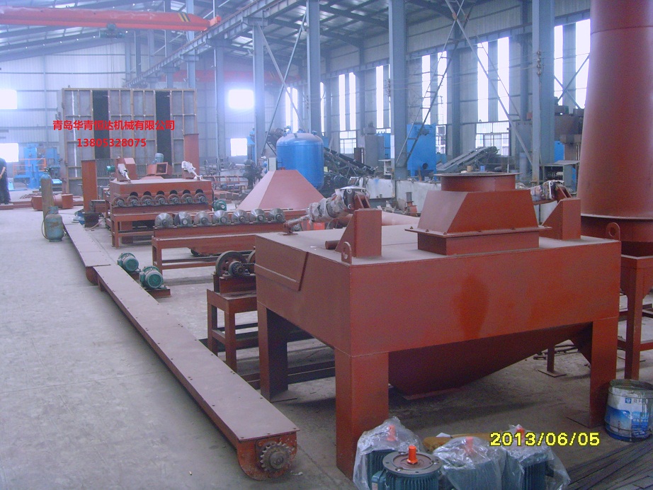 钢管的管径不同而选用不同的抛丸或喷丸处理设备,其中抛丸清理采用液压马达驱动,喷丸清理采用启动马达驱动。 我公司设计的有大管径的内壁抛丸机和直径600以下的小型钢管喷丸机等。该设备采用自动抛丸去除表面锈蚀,利用高效抛丸器抛出的高速弹丸流束击碎钢管内表面上的氧化皮、锈层及其杂物,使之获得精细的光亮表面,提高工件的抗拉和抗压强度,为内表面涂漆保护增加附着力,达到防腐、护管、延长钢管使用寿命之目的。清理后工件表面表面的光洁度和粗糙度符合有关的标准规定。小口径的钢管使用内壁喷丸机,钢管内壁喷丸处理线,主要包括移动台车,砂斗,喷砂罐,喷枪,喷枪承载车,钢管承载系统,底部弹丸输送皮带机,斗提机,维修平台,分离器,除尘系统,支架,气动系统,压缩空气系统,电控系统。